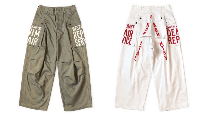 個人的には、ポケットに “WEST COAST REPAIR SERVICE” とプリントされ、背部の刺繍がポイントとなる「ヘリンボン ジャンボモンキーパンツ(ファクトリーリペアpt & 刺繍)」の方がタイプでした。